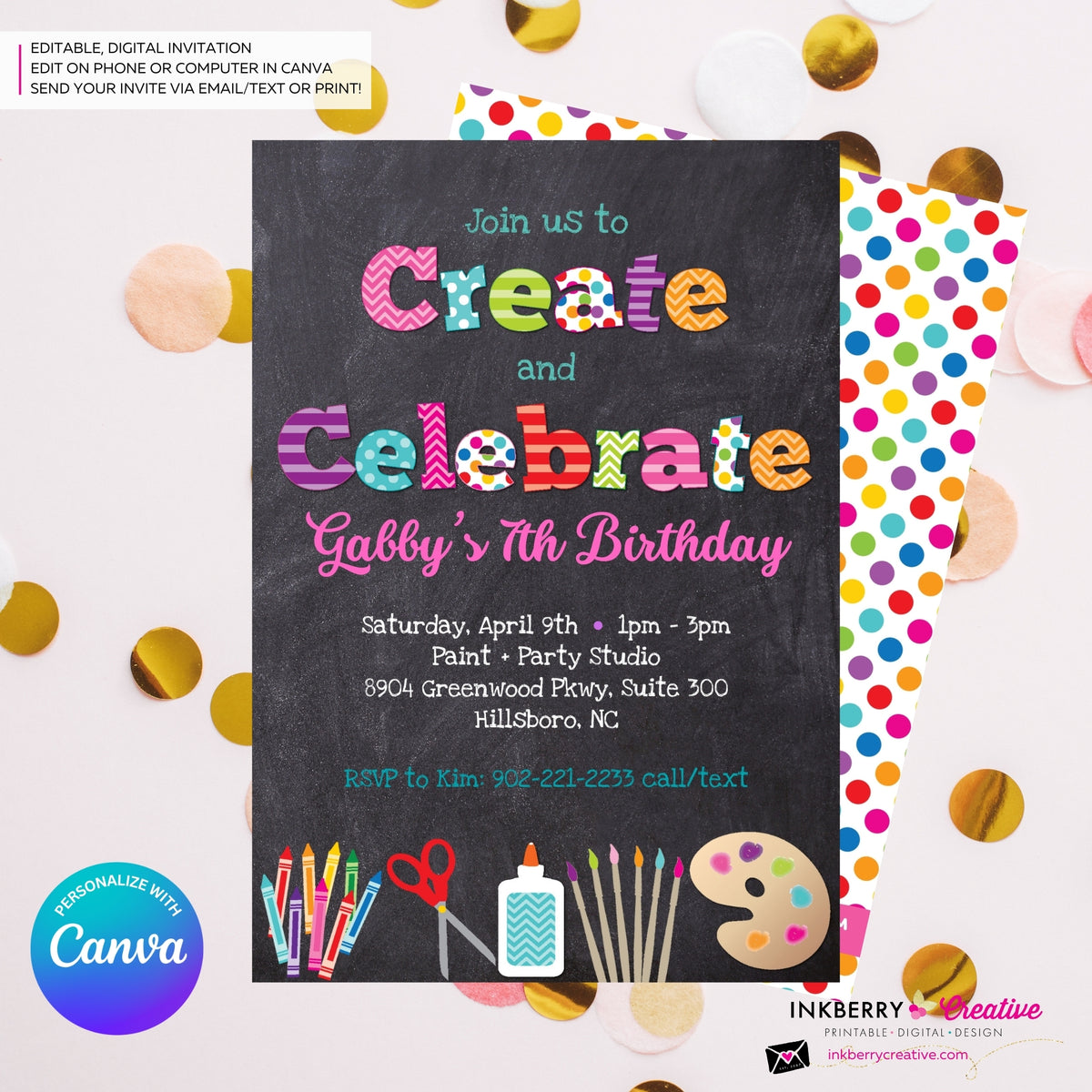 Create and Celebrate - Kids Arts and Crafts Birthday Party Invitation ...