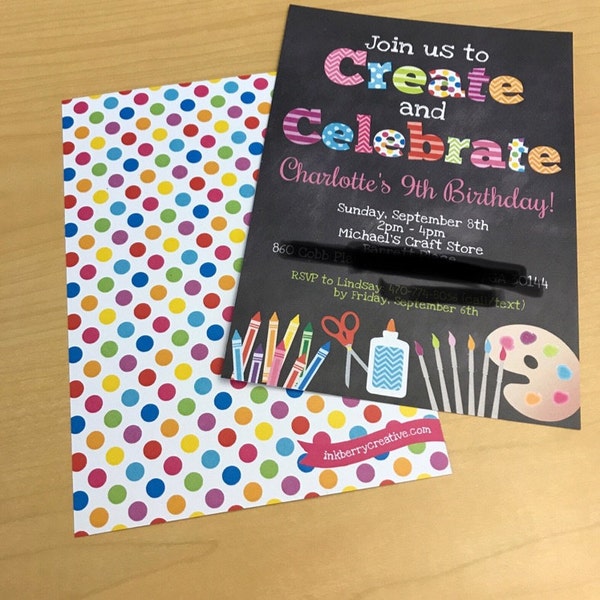 Create and Celebrate - Arts and Crafts Birthday Party Invitation, Chal ...