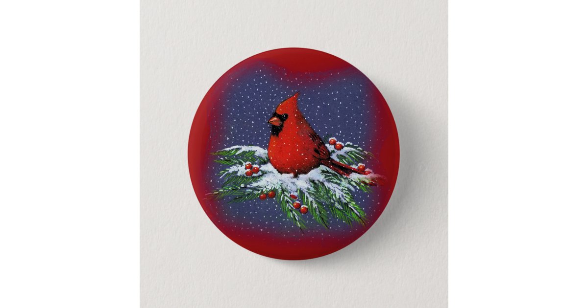 CHRISTMAS BIRD: CARDINAL: ART BUTTON | Zazzle