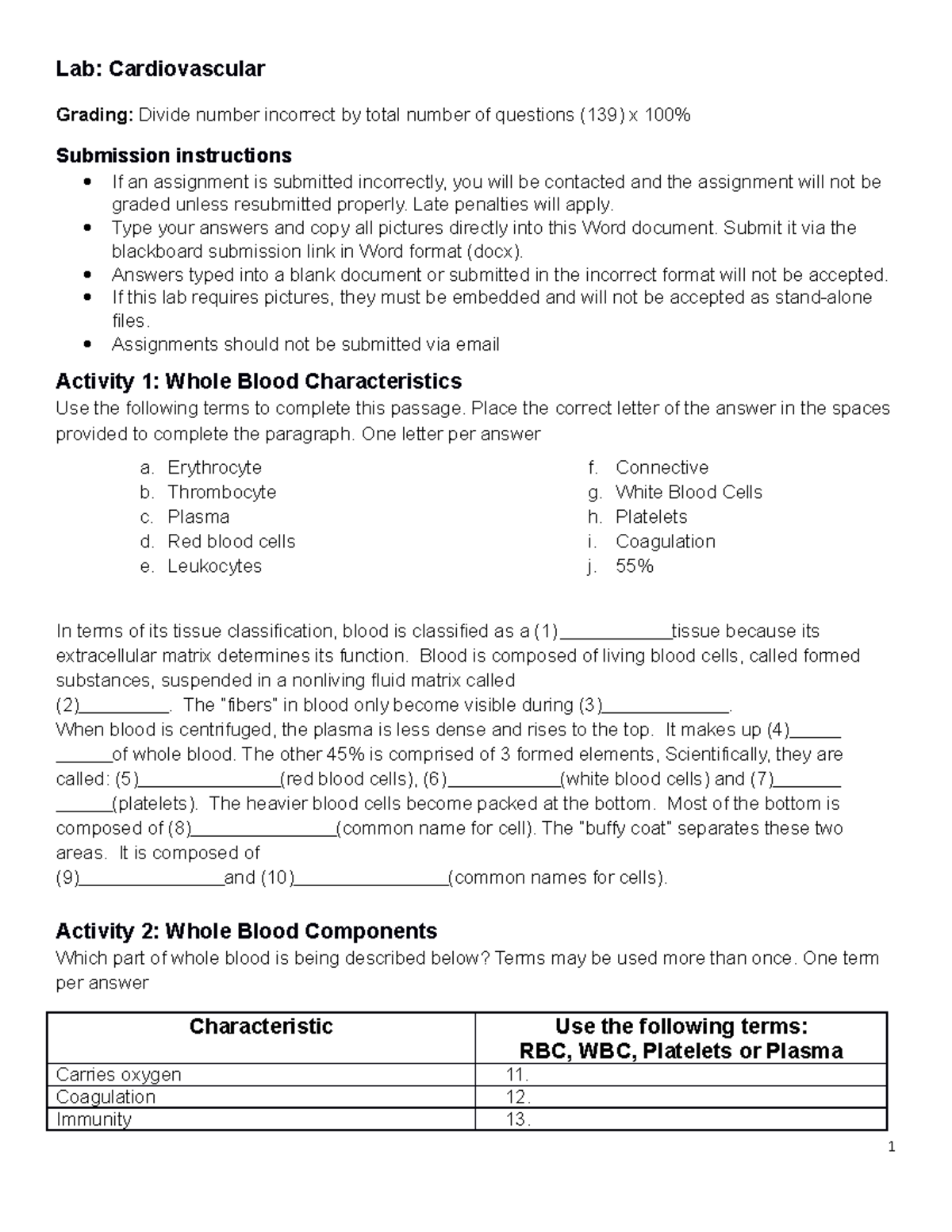 Lab Cardio - Lab: Cardiovascular Grading: Divide number incorrect by ...