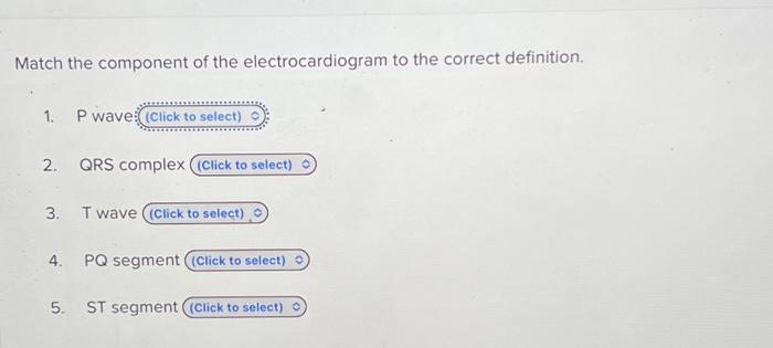Solved Match the component of the electrocardiogram to the | Chegg.com