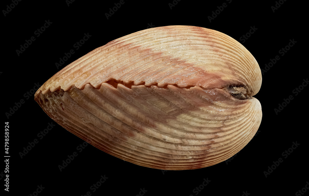 Shell of Bivalve Sea Mollusk Vasticardium Elongatum (Latin Name). Side ...