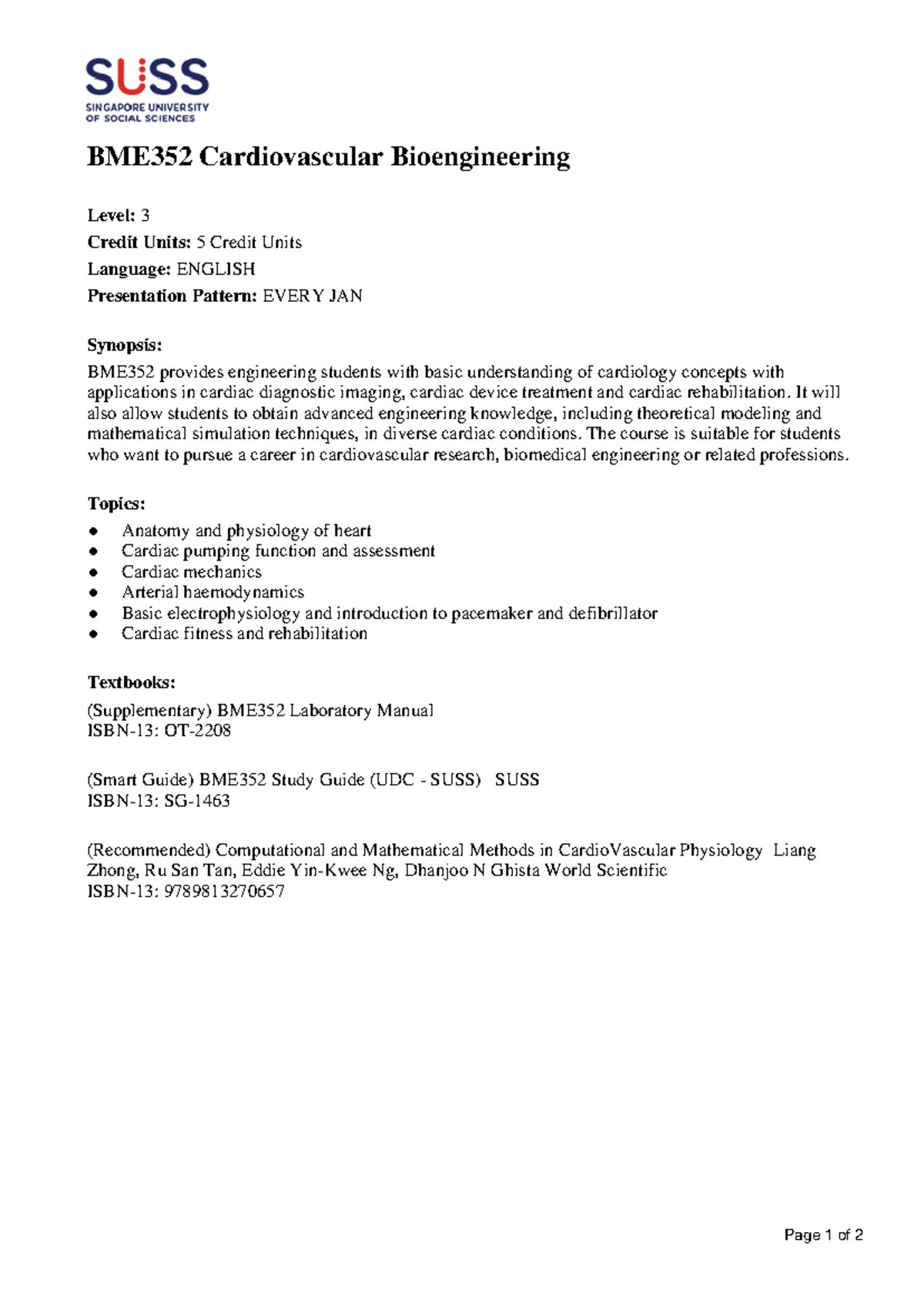 BME352 Cardiovascular Bioengineering Course Overview and Topics - Studocu