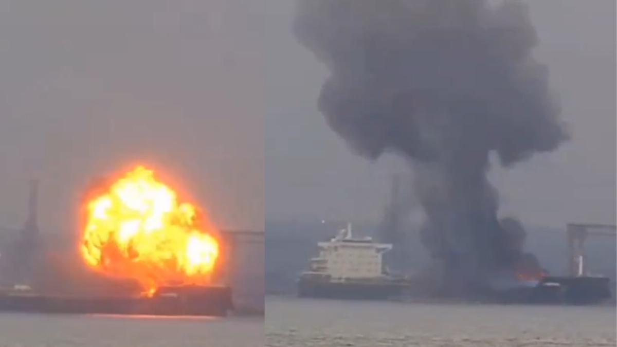 Cargo ship explosion at sea sparks dangerous maritime incident with ...