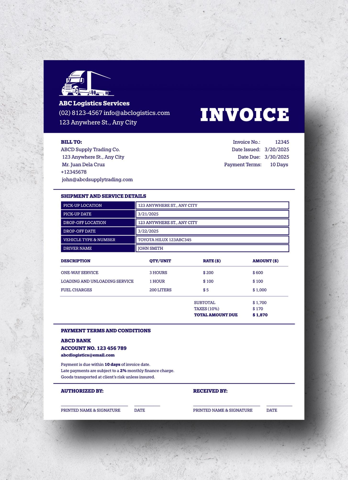 Freight Invoice Template - Free & Editable & Printable | Billdu