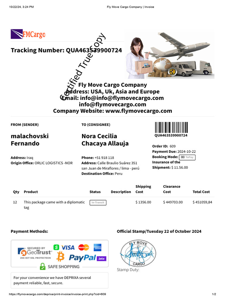 Fly Move Cargo Company - Invoice.. | PDF | Cargo | Supply Chain Management