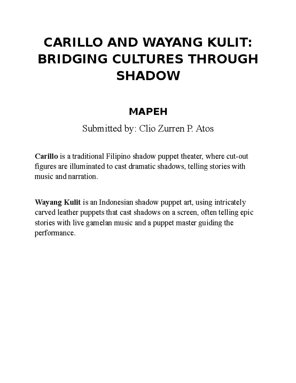 CARILLO AND WAYANG KULIT: CULTURAL CONNECTIONS IN SHADOW THEATER - Studocu