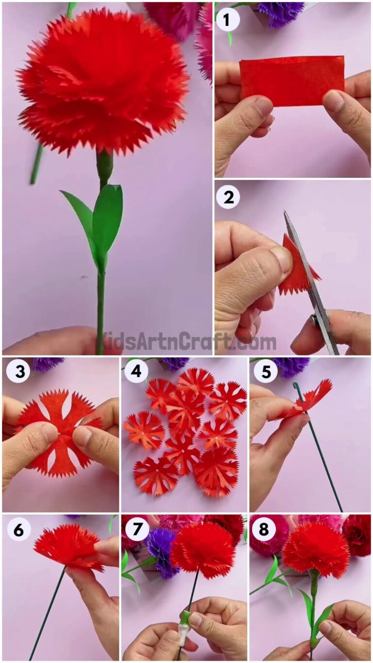 Beautiful Carnation Paper Flowers Craft Tutorial For Beginners - Kids ...