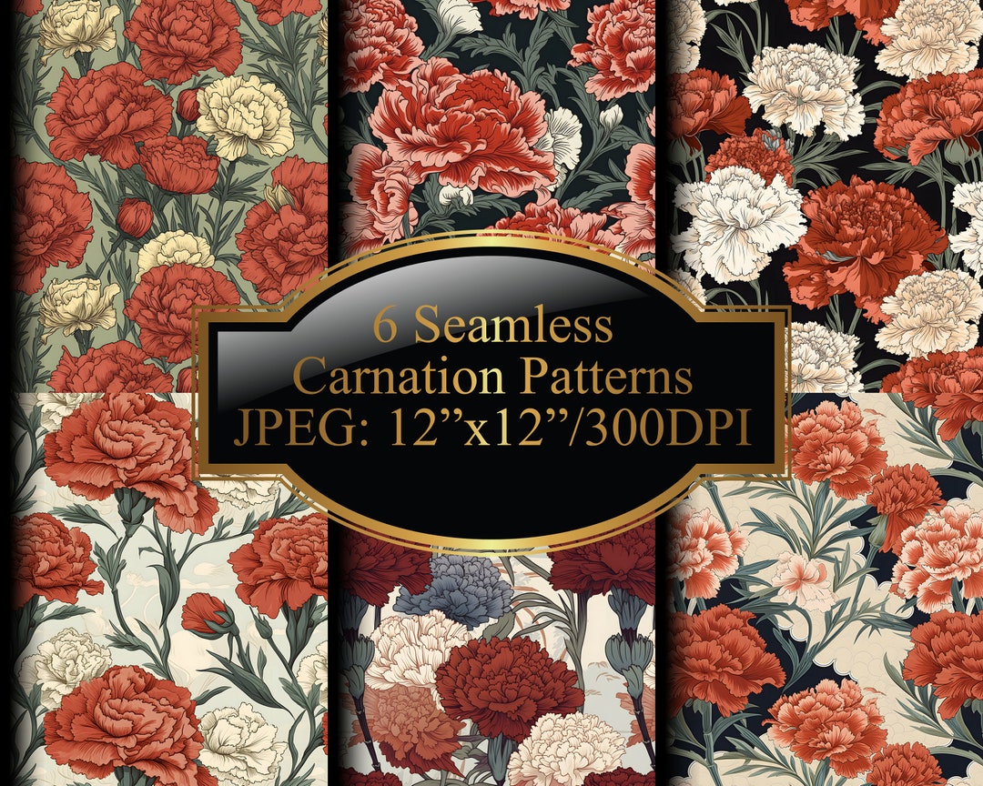 Six Seamless Carnation Patterns, Flower Pattern, Jpeg Files, Digital ...