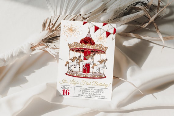Carousel Birthday Invitation, First Birthday, Carousel Invitation ...