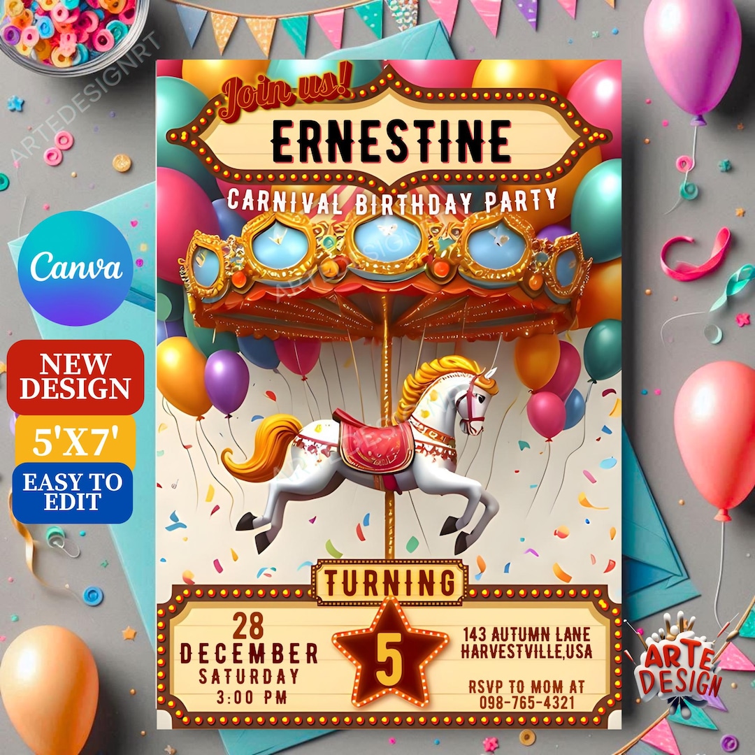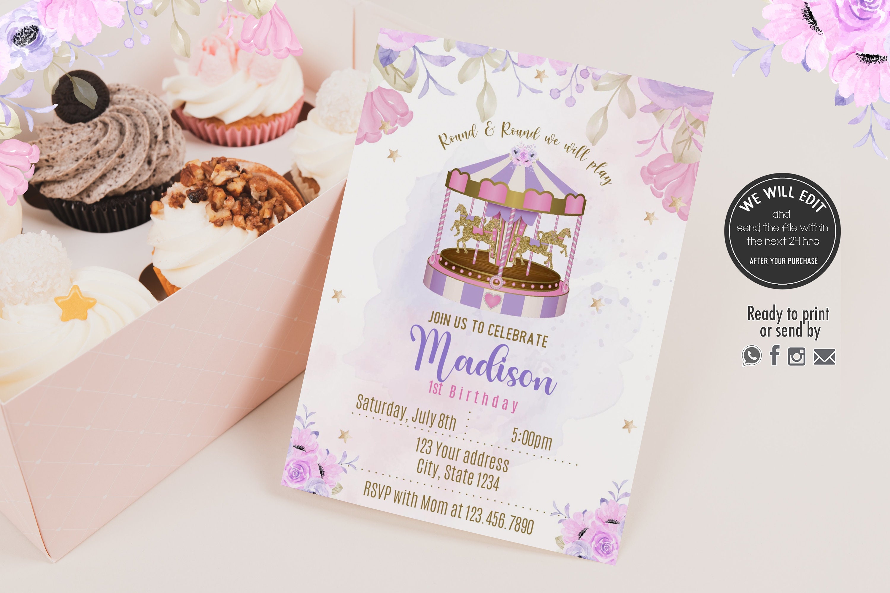 Carousel Birthday Invitation | Carousel Invite | Self-editable | Merry ...