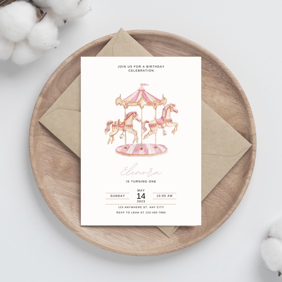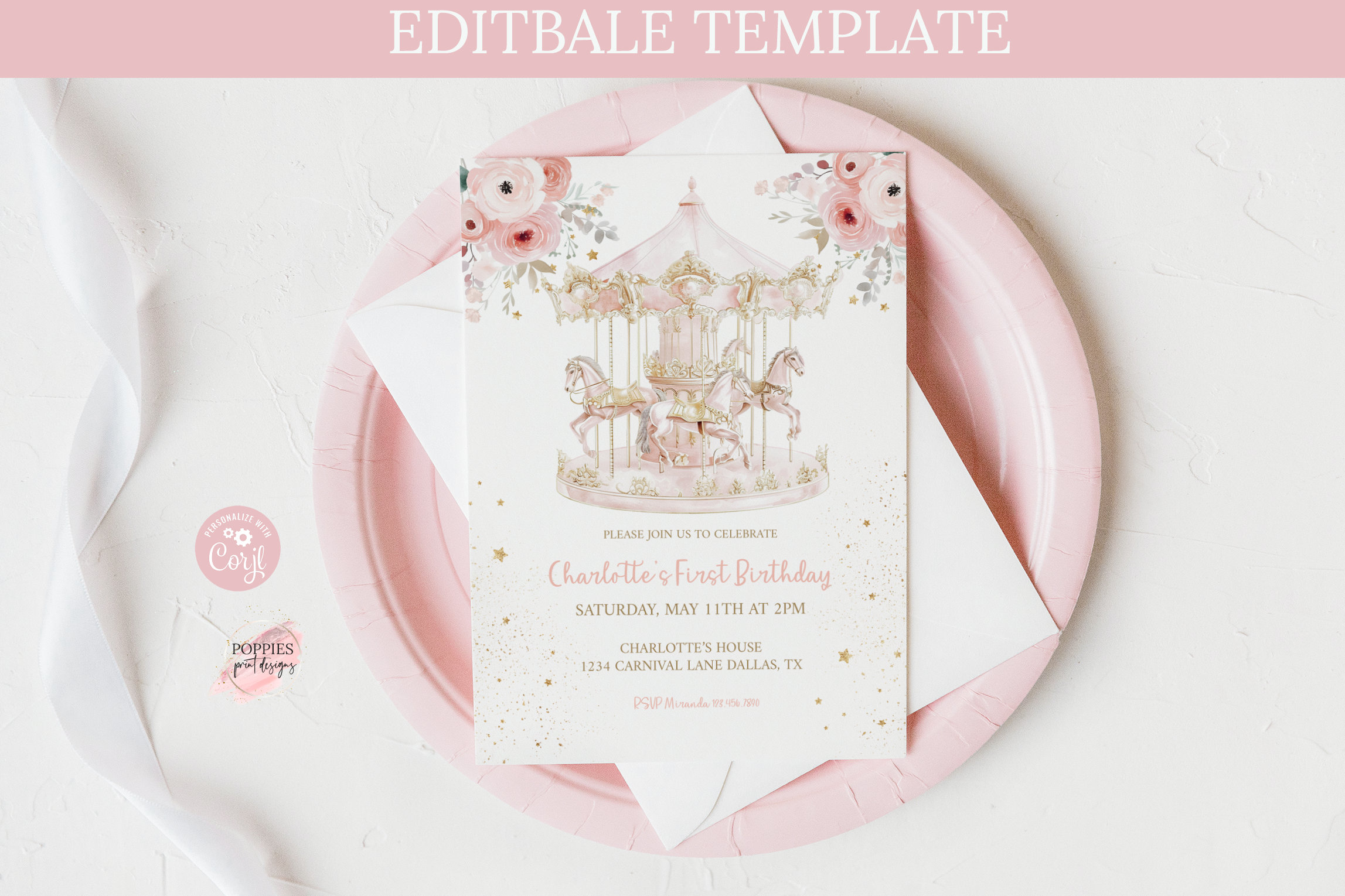 Editable Carousel Birthday Invitation-pink Carousel Invite First ...