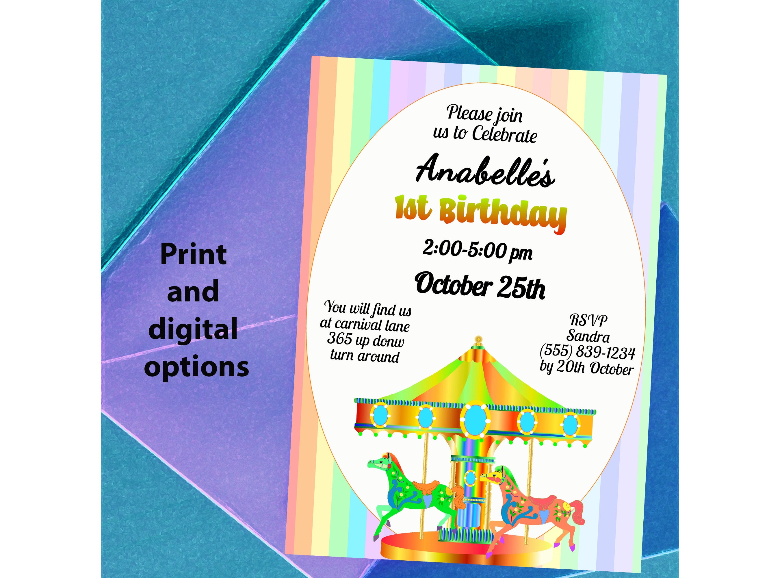 Editable Carousel Invite, Funfair Invite, 1st Birthday Invitation, Baby ...