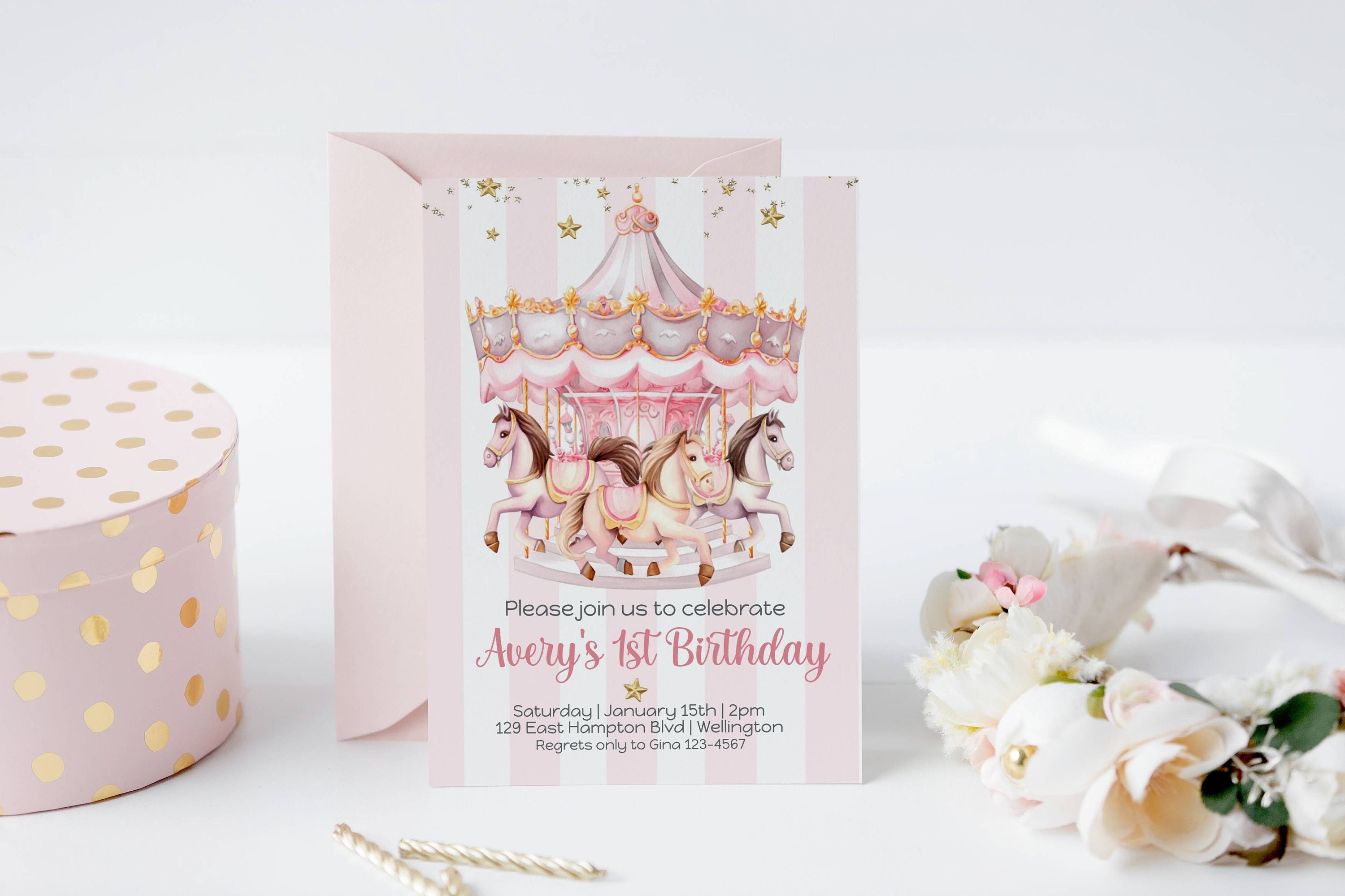 The Carousel Birthday Invitation, Pink Carousel, Grandmillenial, Preppy ...