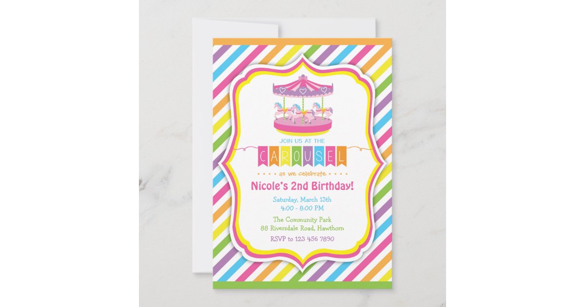 Carousel Birthday party Invitation | Zazzle | Carousel birthday ...