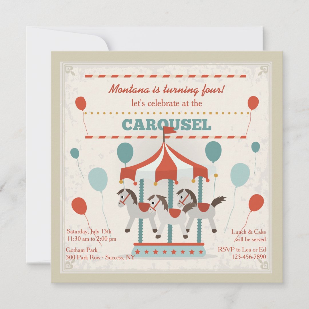 Carousel Theme Birthday Party Invitation, Funfair Carnival Nostagalia ...