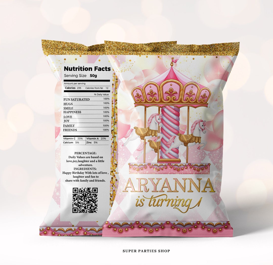 Personalized Carousel Birthday Party Chip Bag Wrappers, Carnival ...