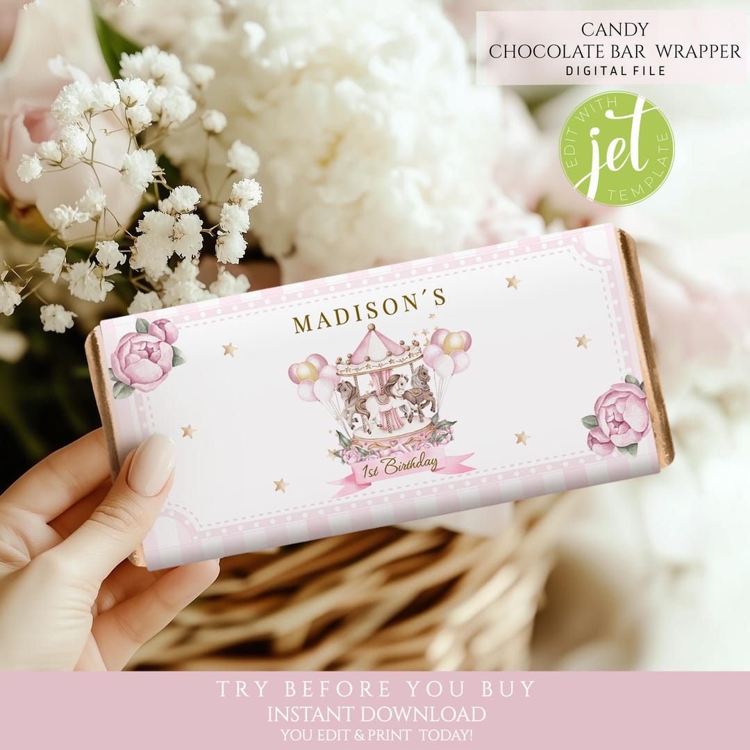 Carousel Candy Bar Wrappers for Chocolate Bar Party Favors-1st - Etsy