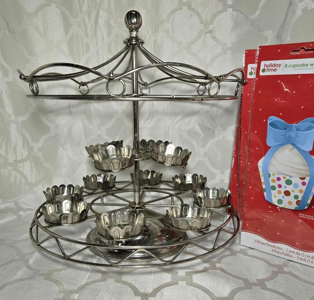 Vintage Godinger 12 Cupcake Carousel Stand and 4 Packs Cupcake Wrappers ...