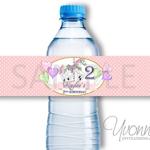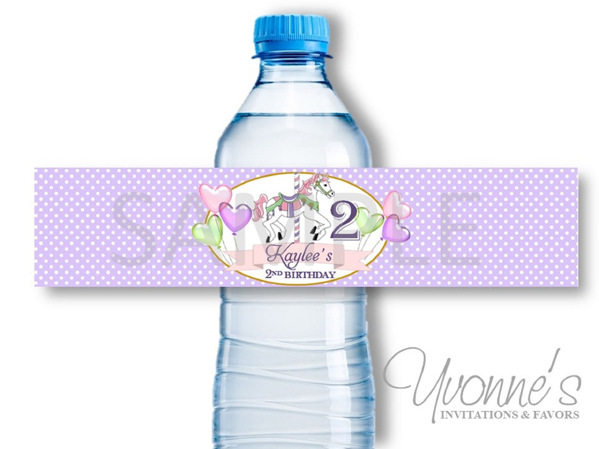 Carousel Water Bottle Wrappers - First 1st Birthday, Baby Birthday ...