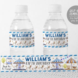 Carousel Bottle Labels Editable Template, Carousel First Birthday Party ...