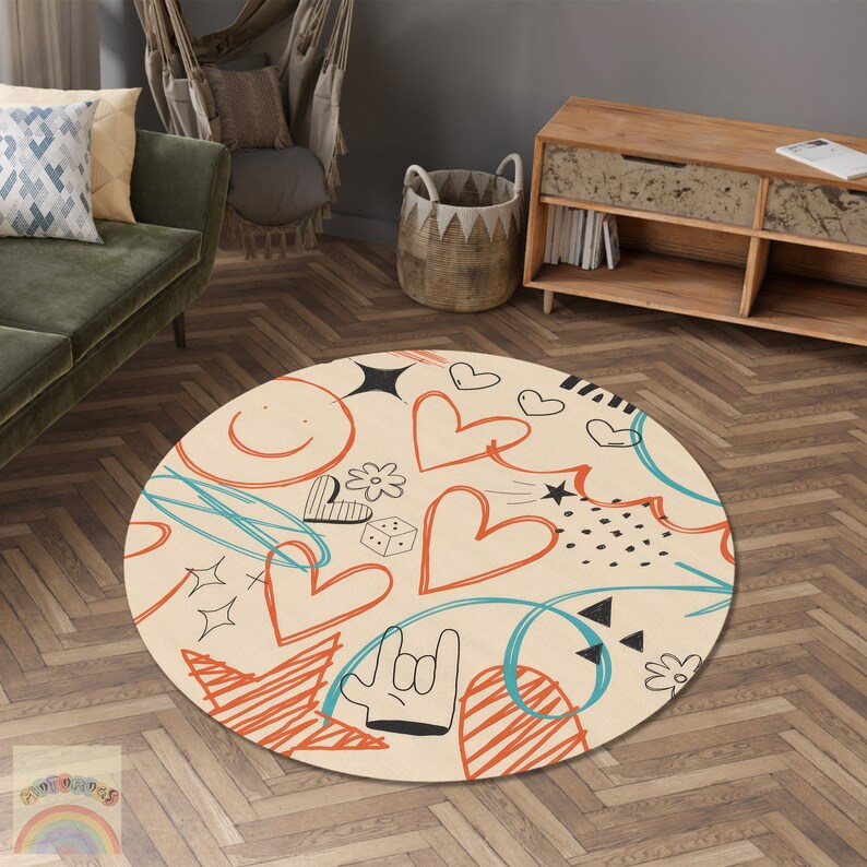 Random Pattern Rug, Pastel Colors Doodle Carpet, Basic Sketch Rug ...