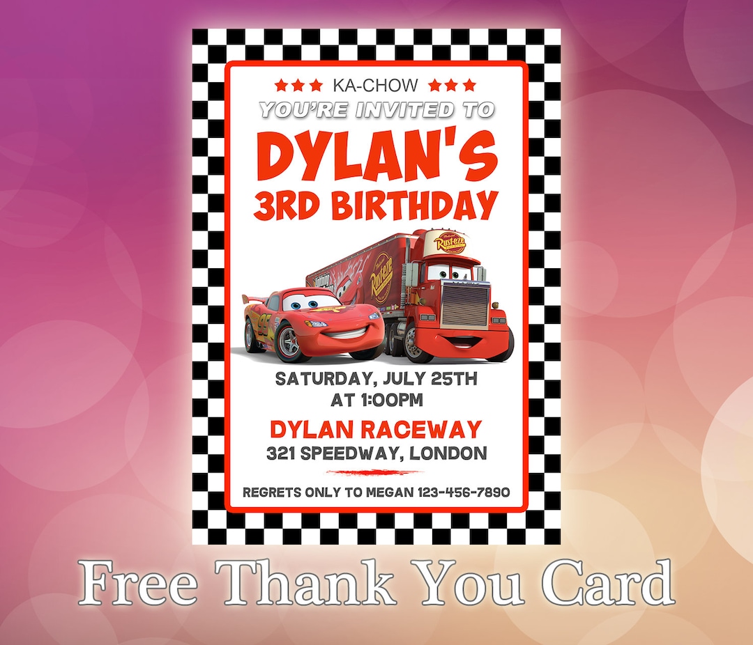Personalized File Cars Invitation Instant Download | Lightni | Inspire ...