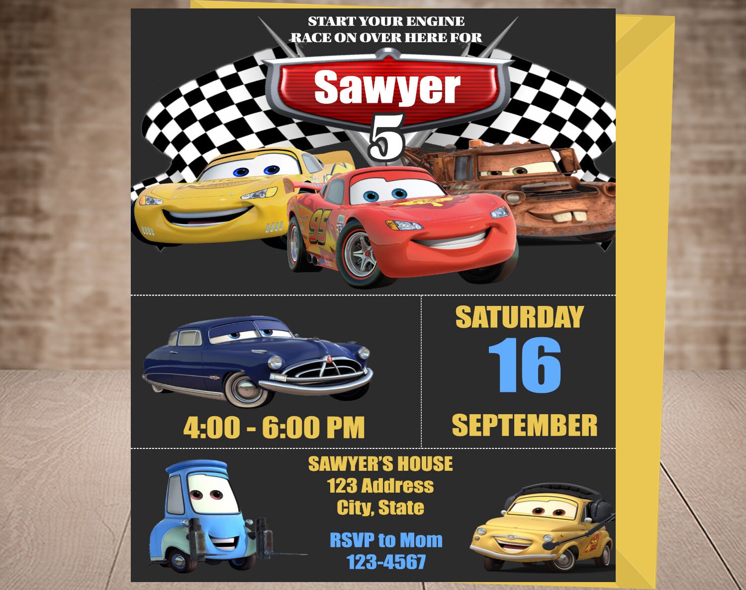 Personalized Disney Cars Birthday Invitation. Disney Cars - Etsy
