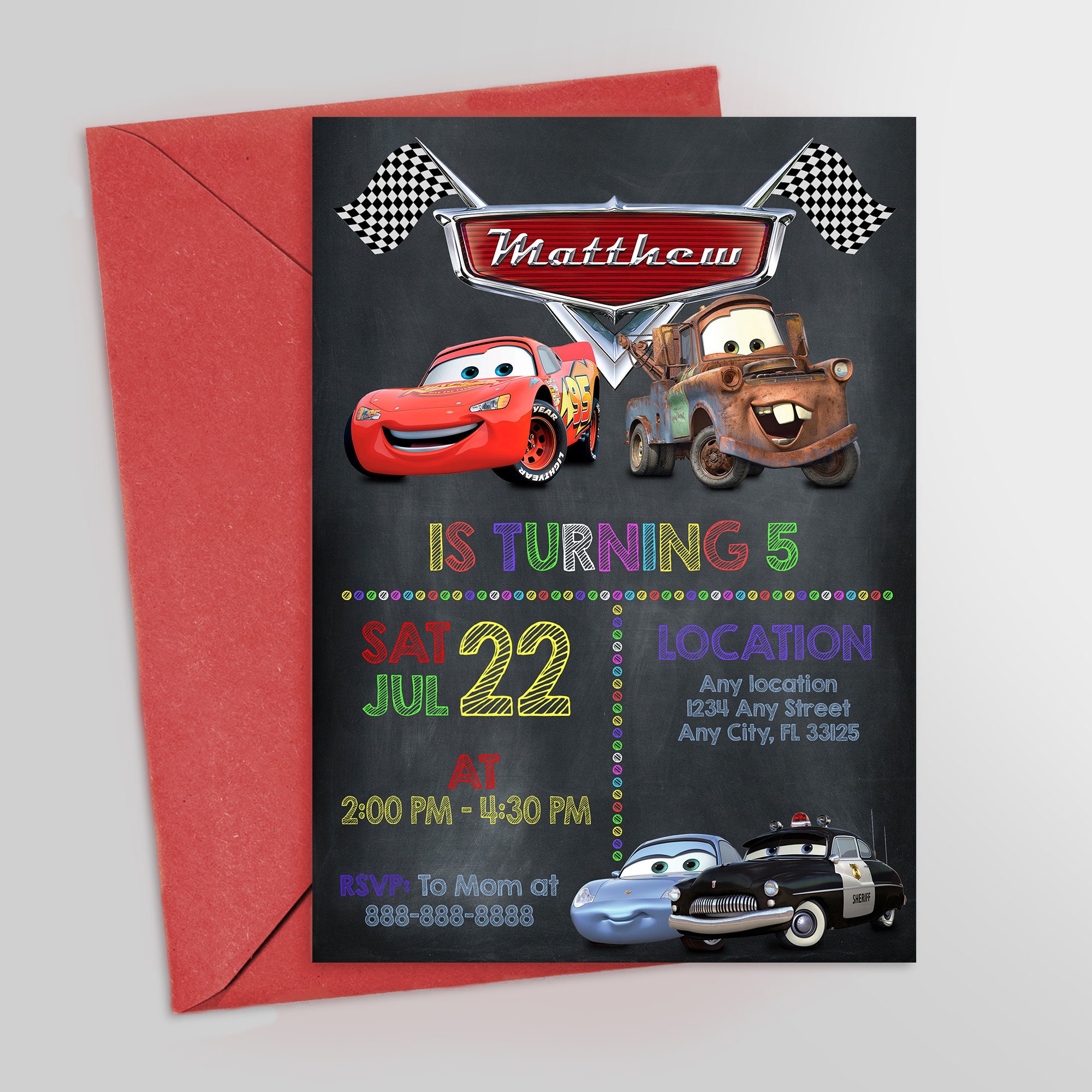 Disney Pixar Cars Inspired Birthday Invitation - Customizable Party ...