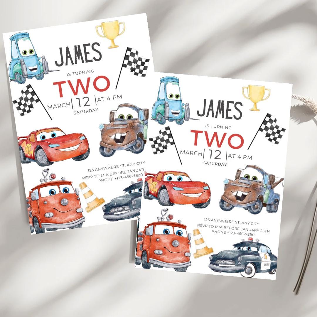 Editable Cars Invitation - Lighting Mcqueen, Cars, Disney, Growing Two ...