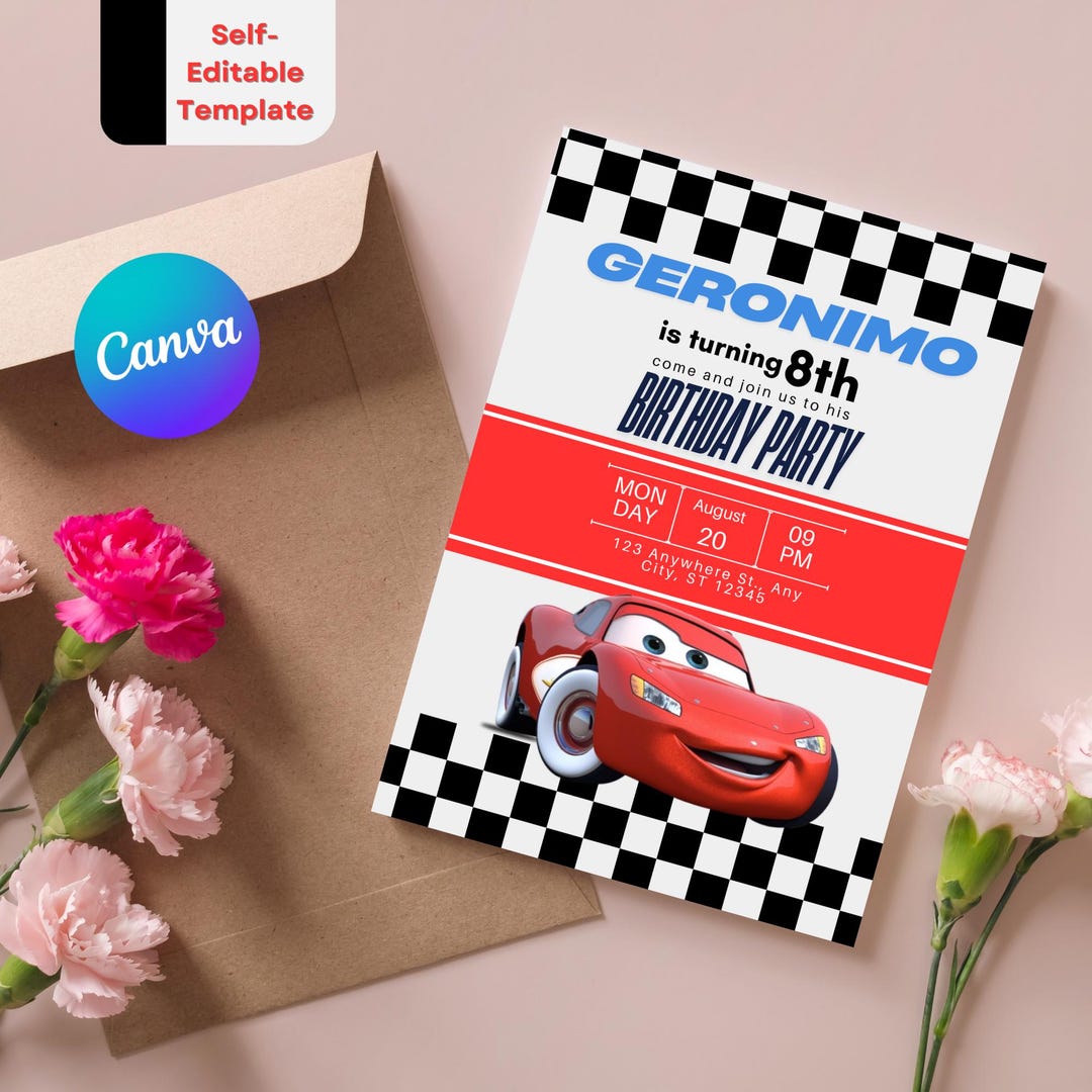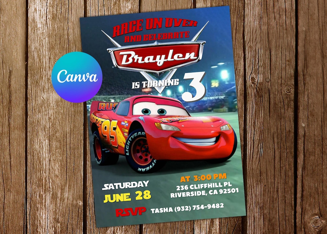 8 glorious disney pixar cars canva birthday invitation templates – Artofit