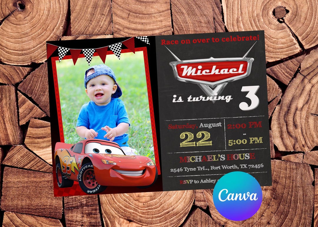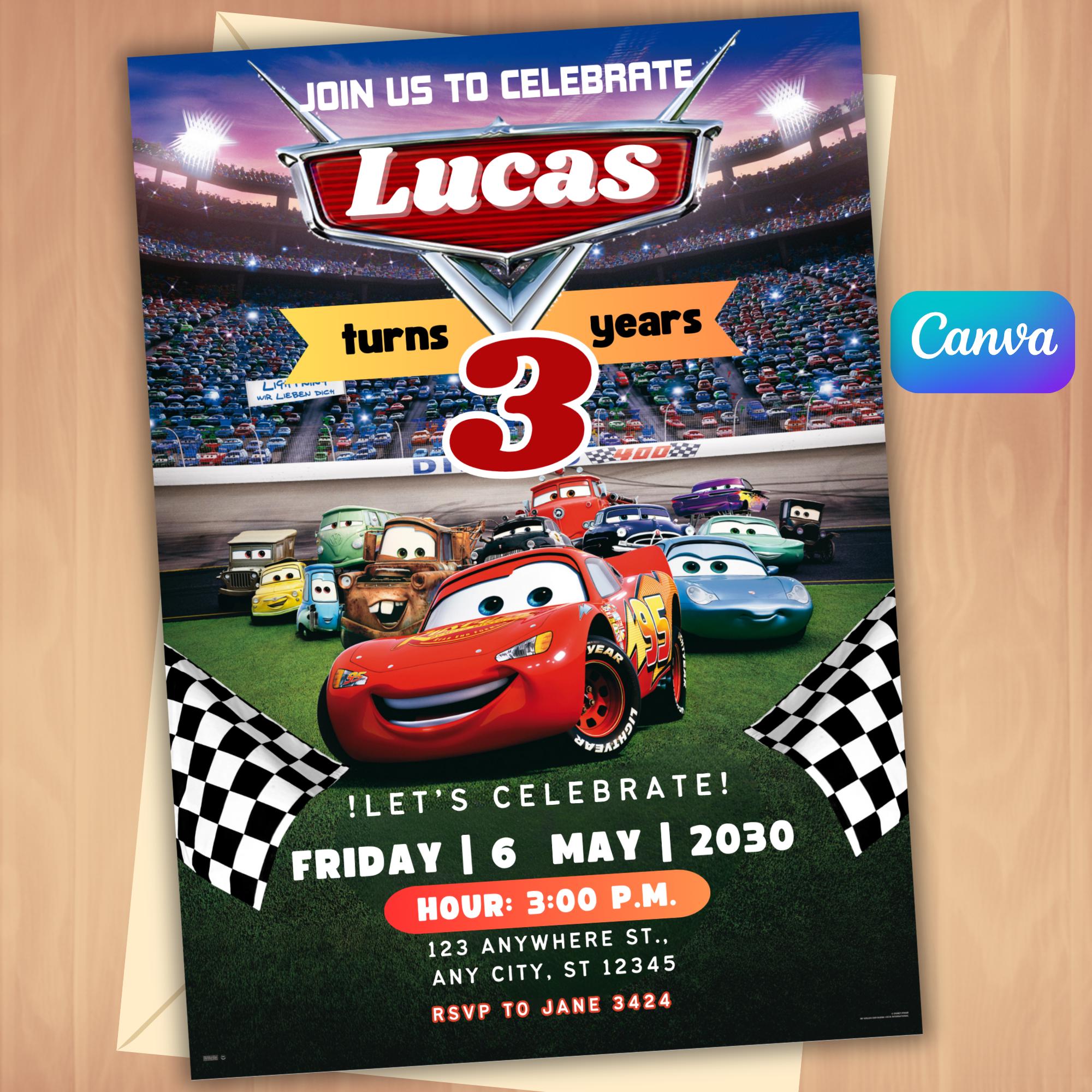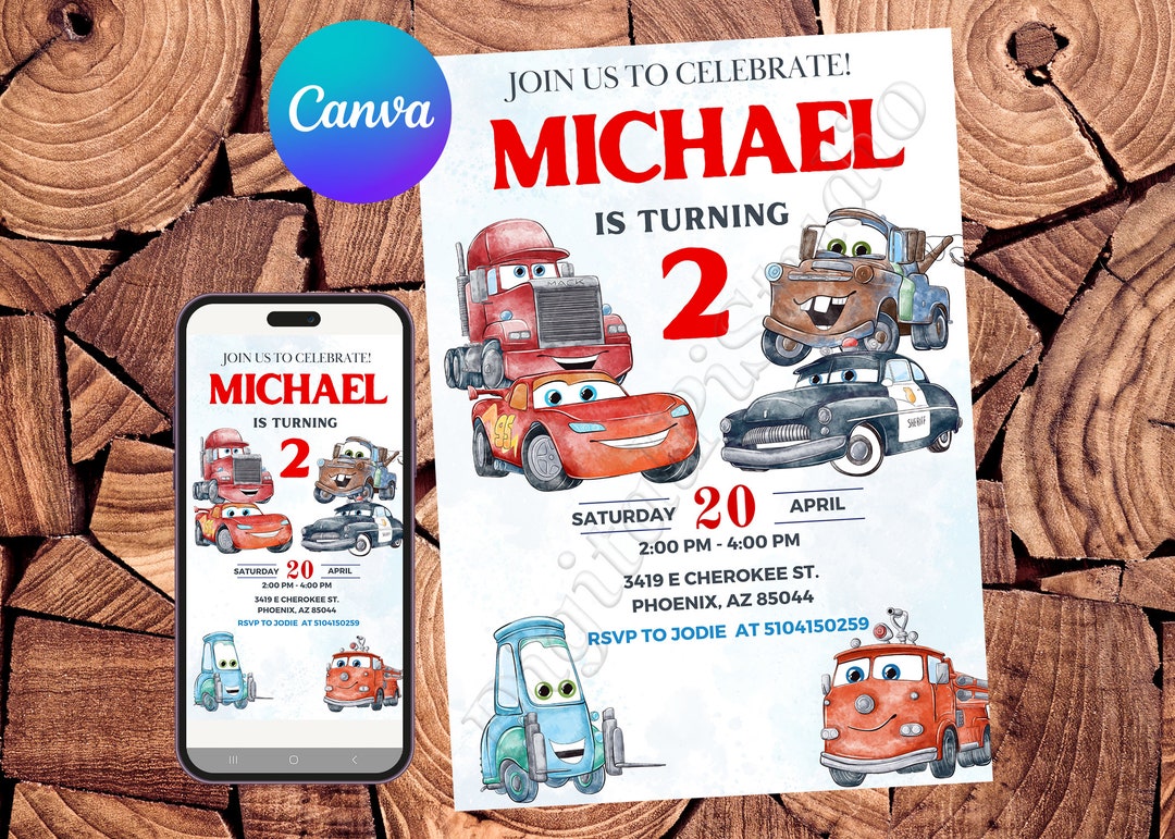 Cars Invitation Canva Template, Cars Birthday Invitation Dig - Inspire ...