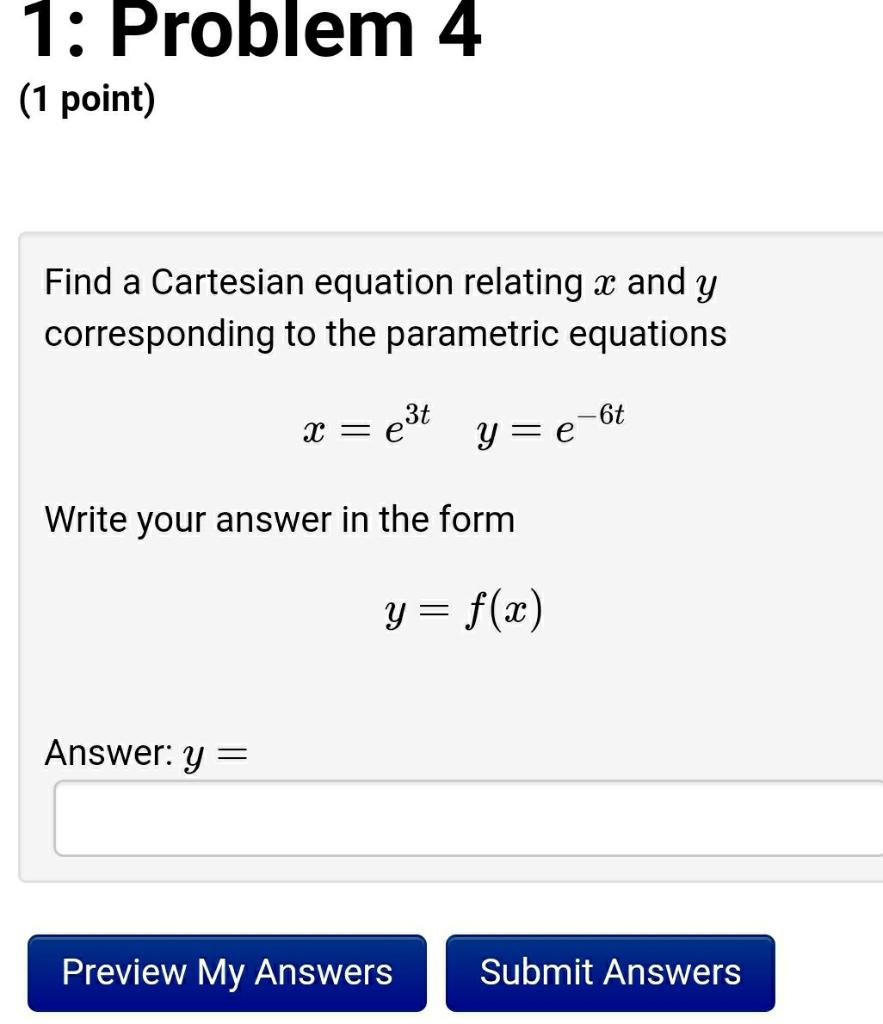 Solved 1: Problem 4 (1 point) Find a Cartesian equation | Chegg.com