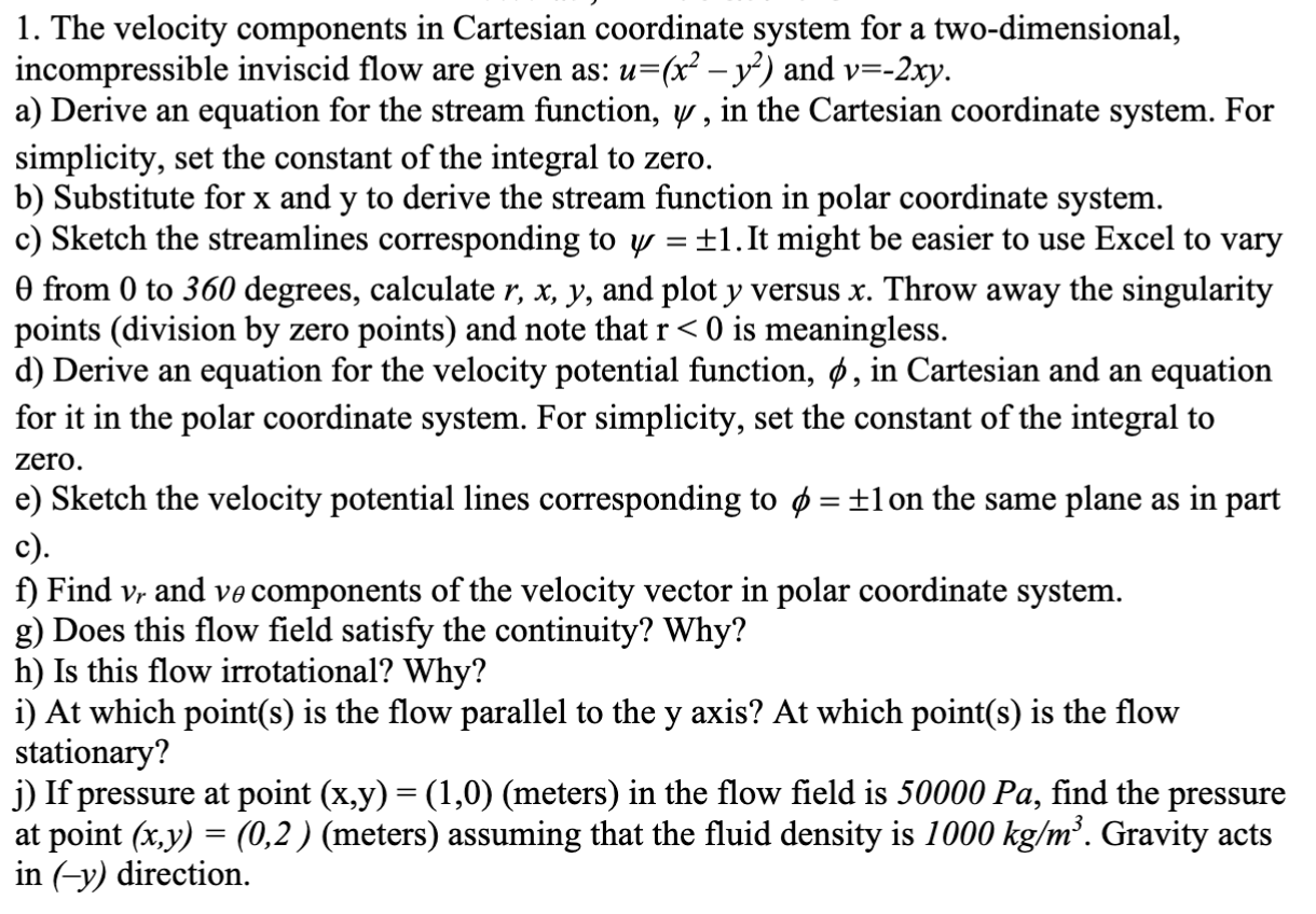 Solved The velocity components in Cartesian coordinate | Chegg.com