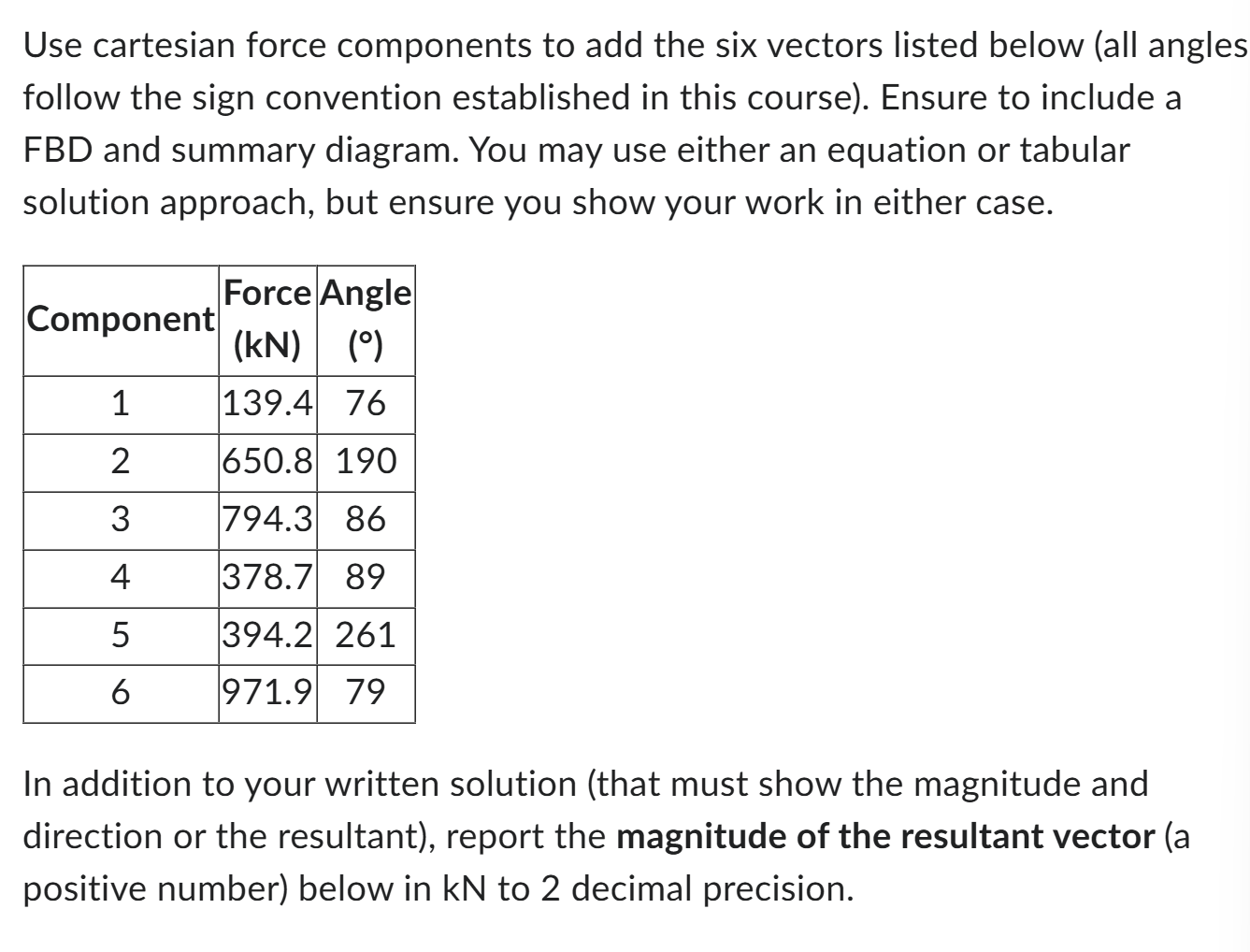 Solved Use cartesian force components to add the six vectors | Chegg.com