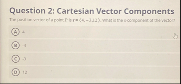 Solved Question 2: Cartesian Vector ComponentsThe position | Chegg.com