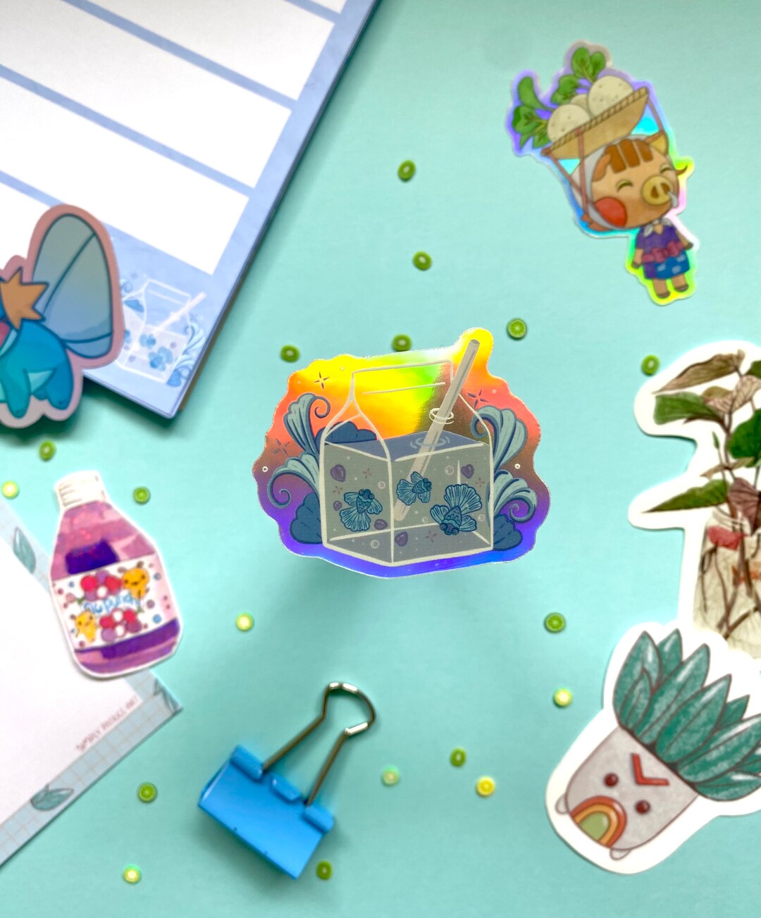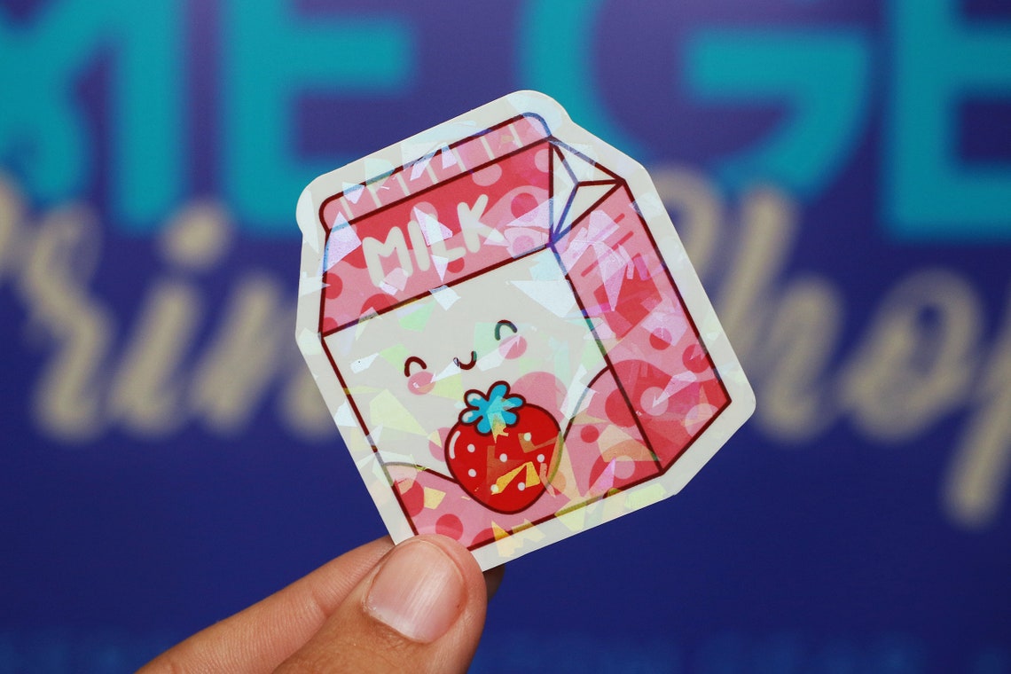 Holographic Milk Carton Sticker Blue Holographic Sticker Shiny Milk ...