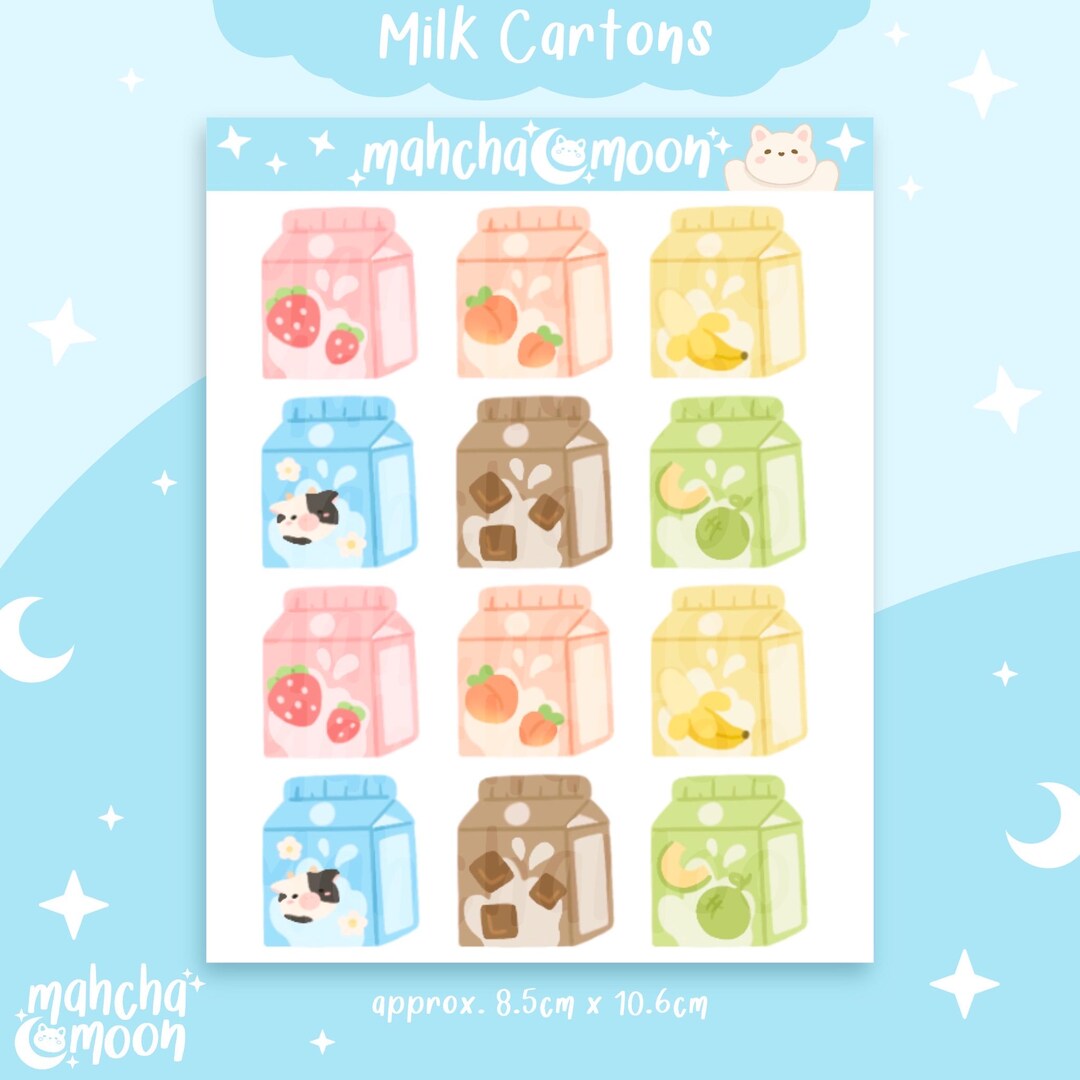 Milk Cartons Sticker Sheet | Strawberry | Chocolate | Matcha | Banana ...