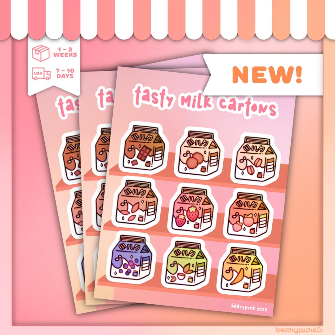 Tasty Milk Cartons Deco Sticker Sheet | Pastel, Kawaii, Aesthetic ...