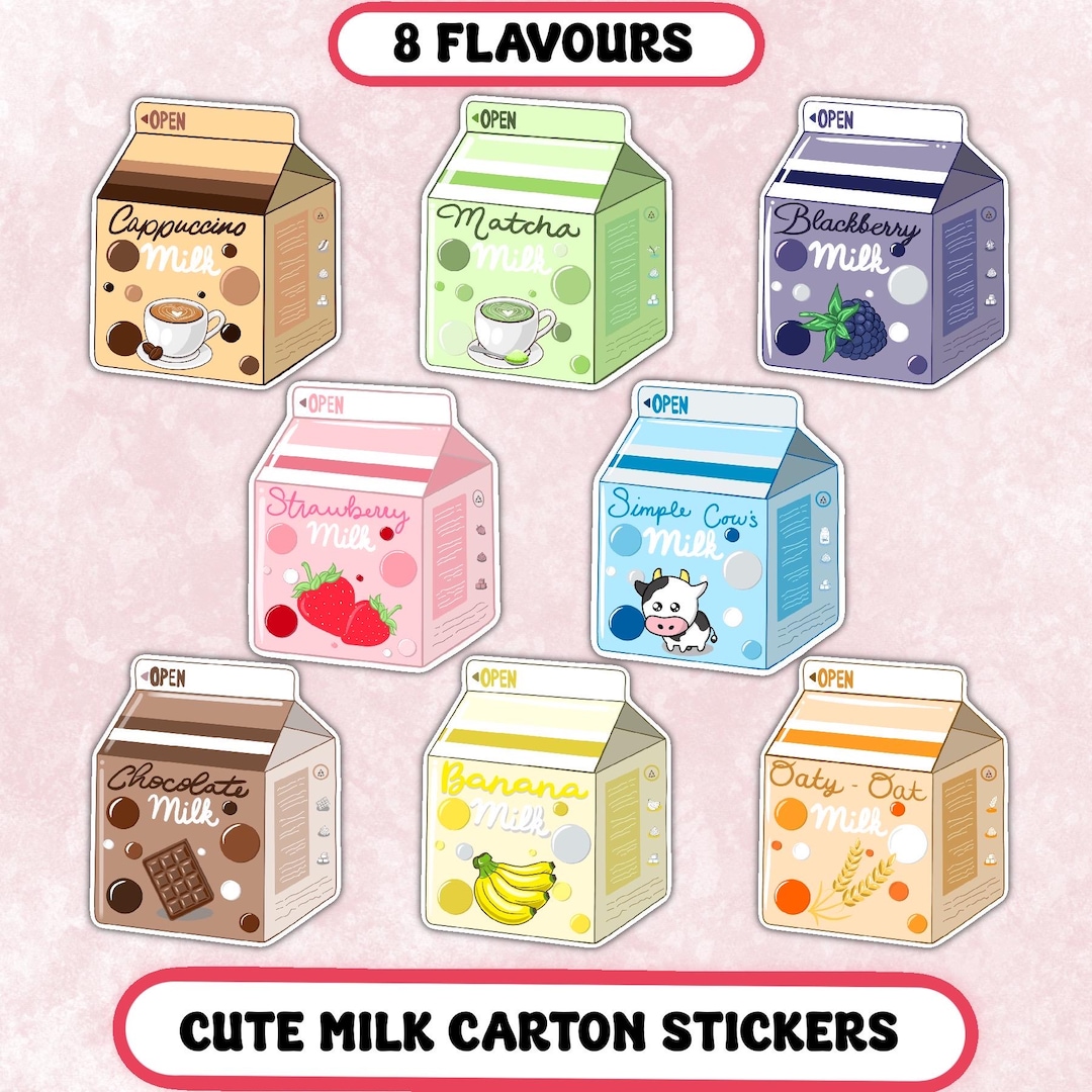 Cute Milk Carton Stickers Bundle | 8 Delicious Flavours | Glossy ...