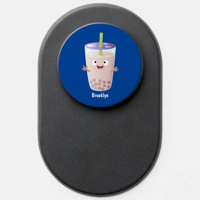 Cute happy bubble tea boba cartoon character PopSocket | Zazzle