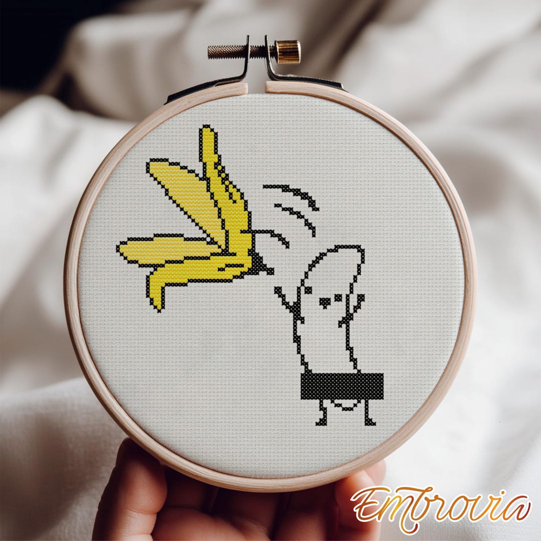 Banana Slap Cross Stitch Pattern – Funny Meme Embroidery, Bold Cartoon ...