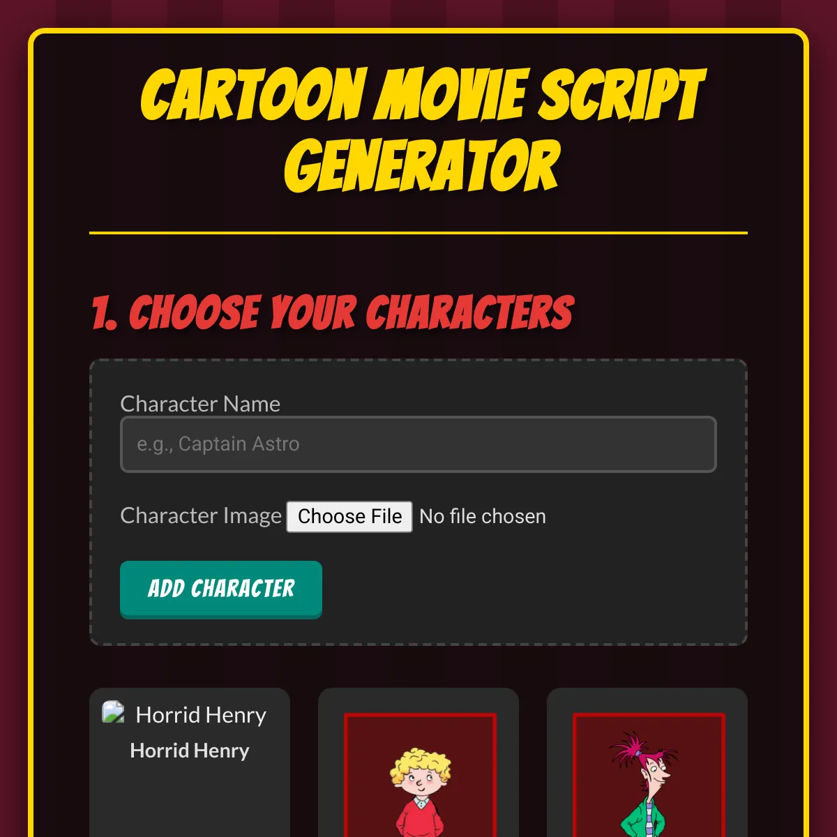 Cartoon Movie Script Generator