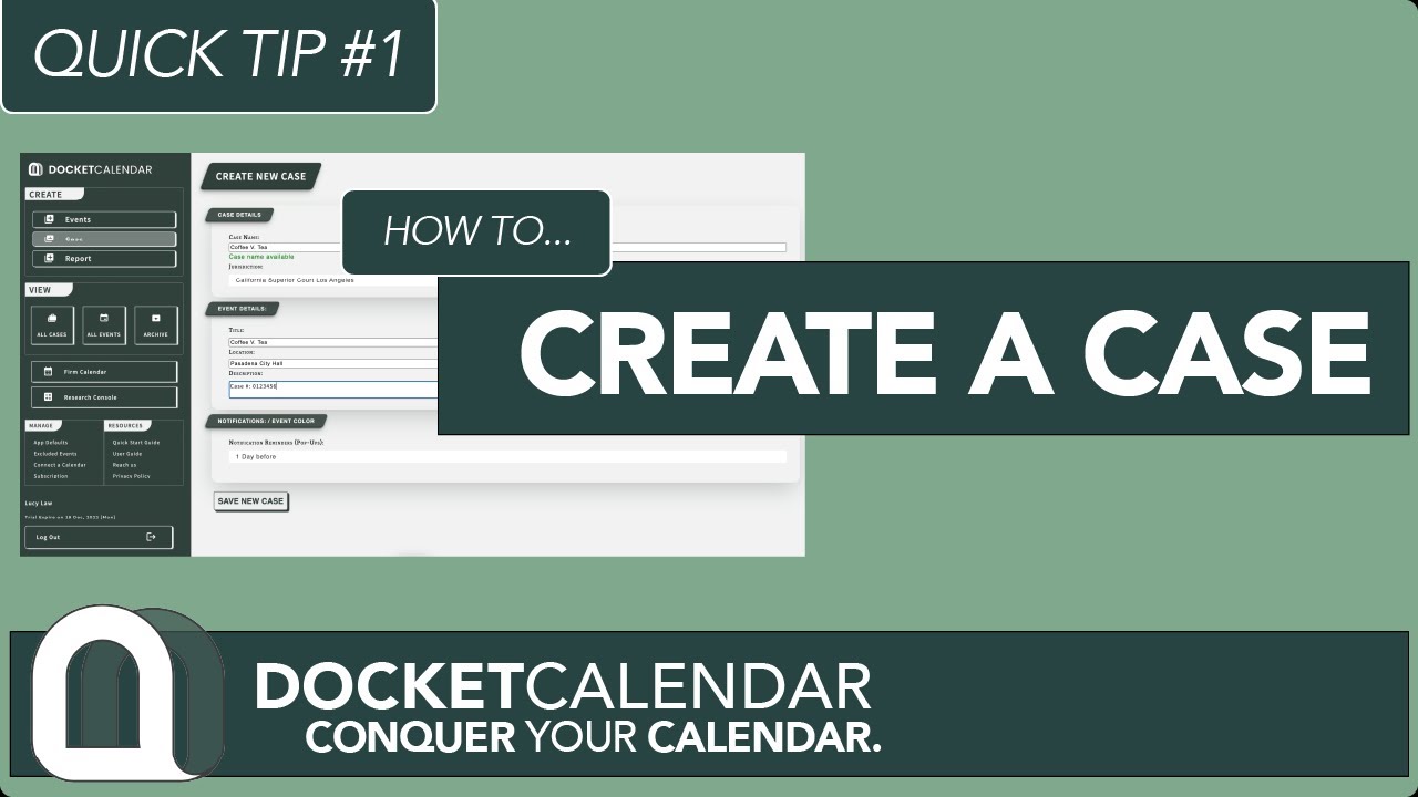 DocketCalendar Quick Tip #1 : HOW TO CREATE A CASE - YouTube