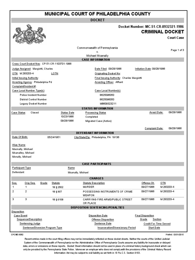 Michael McAnally Murder Charge | PDF | Criminal Record | Pennsylvania