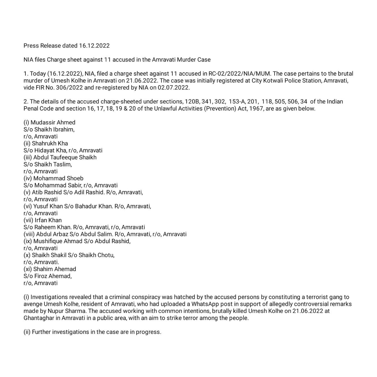 NIA India on Twitter: "NIA files Charge sheet against 11 accused in the ...