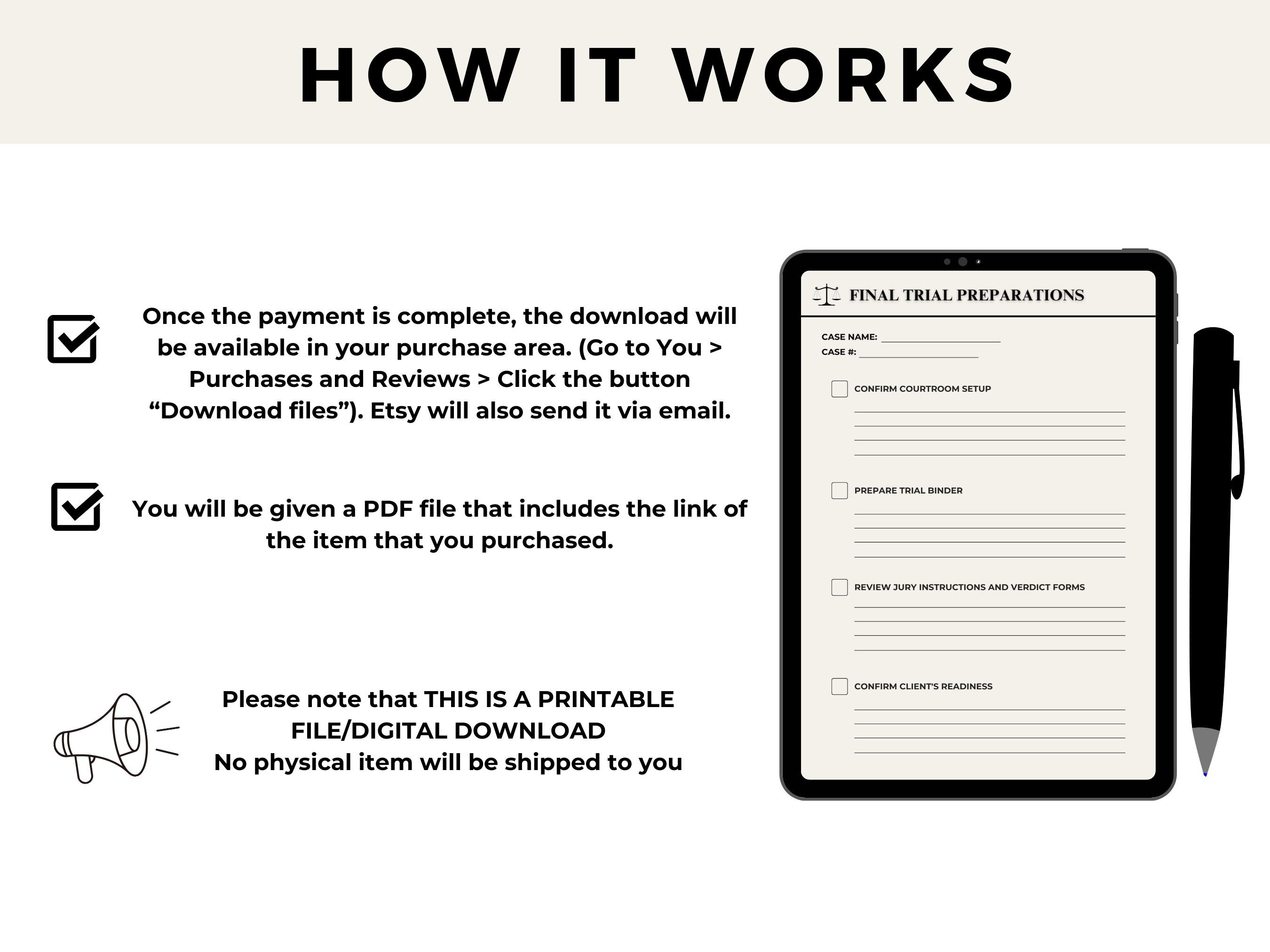 Legal Case Preparation Checklist I Ready-to-print PDF for Legal ...