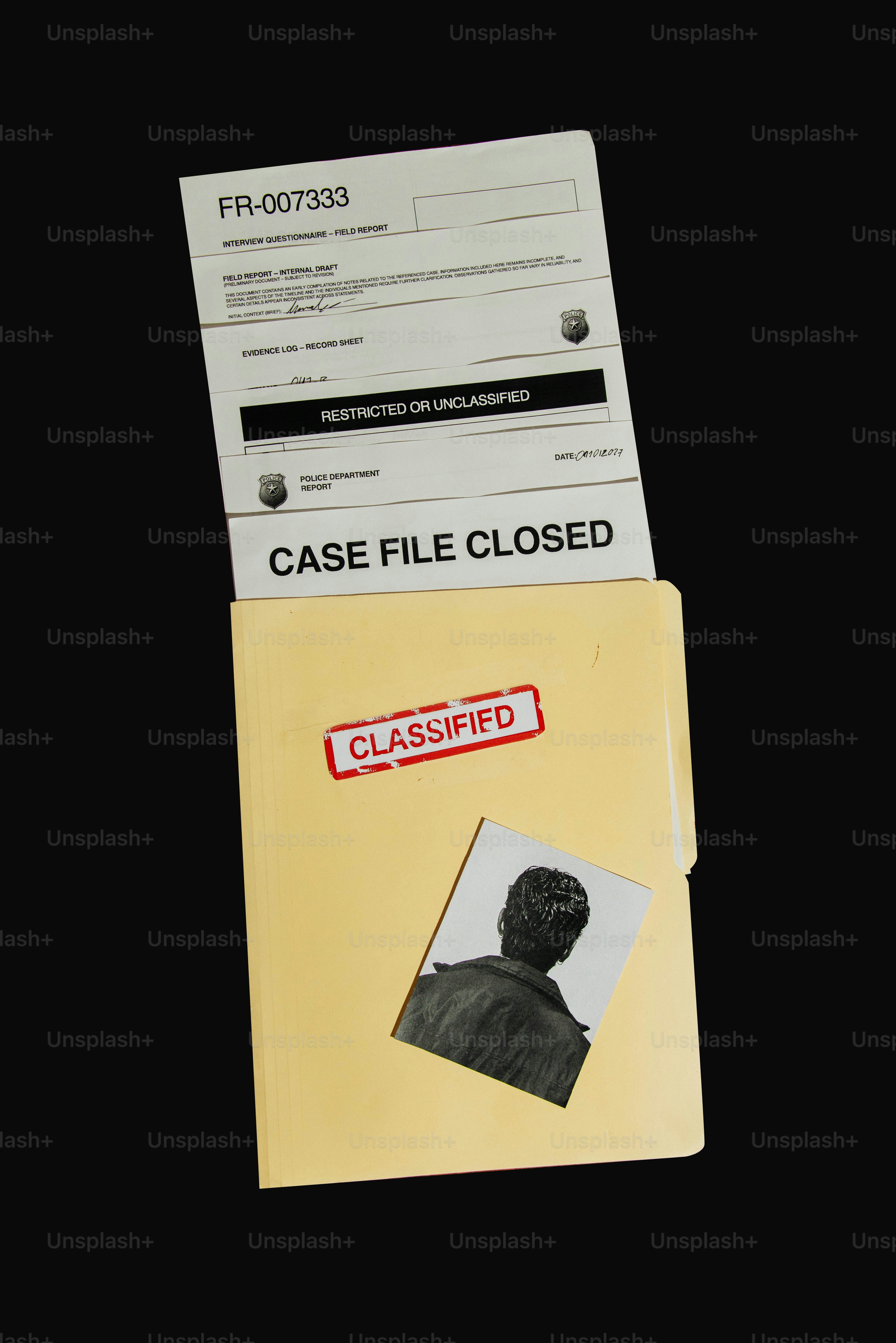 Case file folder with classified documents and photo. photo – Documents ...