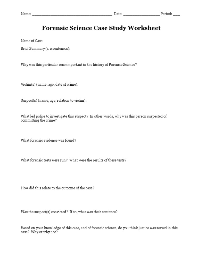 True Crime Case Study Student Analysis & Questions High School Forensic ...