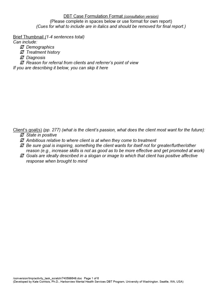 DBT Case Formulation Format With Cues Consultation Version 12-08 | PDF ...